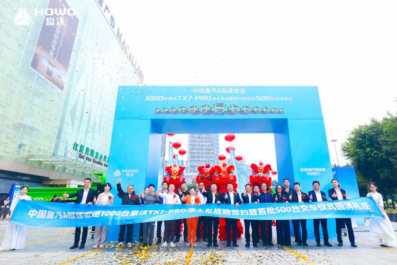 八闽福地,山海和鸣。10月28日,中国重汽与福建宏途1000台豪沃TX7-PRO渣土车战略签约暨首批500台交车仪式在福建福州圆满举行。本次合作秉持“合规、智能、高效”的核心理念,以高端装备的可靠品质与卓越性能,为福州城市建设与运力升级注入强劲动能。