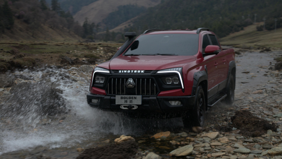越野皮卡(搏胜S9)搭载博格华纳智能适时四驱系统、三把差速锁、7种驾驶模式、12500磅电动绞盘(选装)、18寸全地形轮胎、全车底盘装甲、K-MAN氮气减震器(8段可调)、>700mm的涉水喉、坦克掉头、蠕行模式等专业配置,并可提供海拔、车辆姿态、定位以及气象显示,越野新手也无惧艰难险阻。